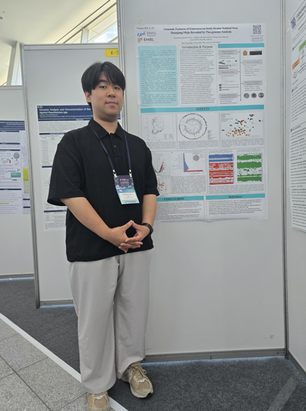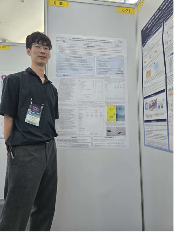 교수님은 Comparative Pangenome Analysis Unveils Phylogenetic and Evolutionary Insights into Microbes from traditional Fermented Soybean Foods를 주제로 구두 발표하여 많은 연구자들의 관심을 받았고, 최대규 연구원은 Genomic Features of Enterococcus latis Strains Isolated from Doenjang-Meju Revealed by Pan-genome Analysis를 주제로, 이대승 연구원은 Telluria amylolytica sp.nov., isolated from riverbank soil and Pseudoduganella sedimenti sp.nov., isolated from stream sediment를 주제로 포스터 발표를 하였다. 또한 학회 참석을 통해 많은 발효식품 연구자들과 교류하는 시간을 갖기도 하였다.